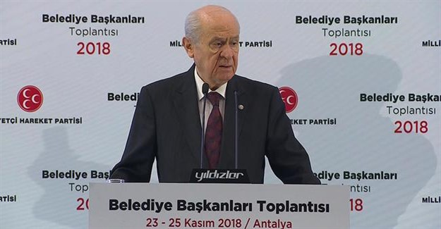 MHP Genel Başkanı Devlet Bahçeli, yerel seçimlerde İstanbul, Ankara ve İzmir’de aday göstermeyeceğini hatırlatarak “Bu illerde AK Parti kimi isterse, kimi dilerse aday çıkarabilir. Biz müsterih bir vicdanla ve ön şartsız destekleyeceğiz” dedi. Bahçeli, partisinin “İl ve Belediye Başkanları Toplantısı”nın kapanışında yaptığı konuşmada özetle şunları kaydetti: