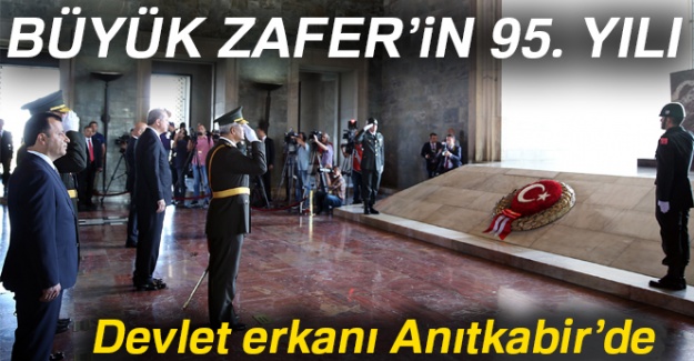 30 Ağustos Zafer Bayramı'nın 95'inci yıl kutlamaları Cumhurbaşkanı Recep Tayyip Erdoğan ve beraberindeki devlet erkanının Anıtkabir'i ziyaretiyle başladı. Anıtkabir'de düzenlenen törene Cumhurbaşkanı Erdoğan, TBMM Başkanı İsmail Kahraman, Başbakan Binali Yıldırım, Bakanlar Kurulu üyeleri, CHP Genel Başkanı Kemal Kılıçdaroğlu, Genelkurmay Başkanı Orgeneral Hulusi Akar, kuvvet komutanları, yargı mensupları katıldı. Aslanlı Yol'dan yürüyen heyet, daha sonra Gazi Mustafa Kemal Atatürk'ün mozolesine çelenk bıraktı. Ardından Misak-ı Milli Kulesi'ne geçildi.Misak-ı Milli Kulesi'nde Anıtkabir Özel Defteri'ni imzalayan Cumhurbaşkanı Erdoğan, deftere şunları kaydetti: "Aziz Atatürk, Büyük Zaferin 95’inci yıl dönümünü bir kez daha iftiharla kutluyoruz. Kurtuluş Savaşımızın başarıya ulaşmasının müjdecisi olan bu tarihi zaferi Malazgirt’ten günümüze uzanan zorlu mücadele zincirinin çok önemli bir halkası olarak görüyoruz. 30 Ağustos’ta kazandığımız zaferden aldığımız güçle Cumhuriyetimizi kurarken hedefimizi muasır medeniyet seviyesinin üzerine çıkarmak olarak belirlemiştik. Türkiye çizdiğiniz hedefler doğrultusunda yoluna devam etmektedir. 15 Temmuz gecesi sergilenen destansı direniş ülkemizin ekonomik ve siyasi bağımsızlığına yönelik tüm saldırıları bertaraf etme konusundaki kararlılığını ortaya koymuştur. Sizin, aziz şehitlerimizin ve kahraman gazilerimizin bizlere emaneti olan bu vatana canımız pahasına sahip çıkmayı sürdüreceğiz. Ruhunuz şad olsun."
