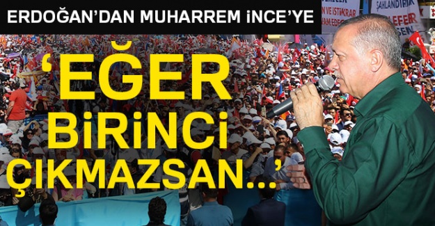 "Siyasetimizden, ekonomimizden üzerine titrediğimiz ne varsa hepsini hedef aldılar. Şimdi birileri çıktı ülkemizin ve Denizlimizin ne kadar kazanımı varsa hepsine de gözlerini diktiler. Benim milletim buna izin verir mi? Denizli istikrarın bozulmasına izin verir mi? Denizli bu seçimlerde tercihini bir kez daha hizmet siyasetinden yana kullanıyor muyuz? 24 Haziran da güçlü hükümet için Cumhurbaşkanlığın da şahsımı, mecliste AK Parti’yi destekliyor muyuz? İnşallah sizlerin desteği ile irade, erdem ve cesaret ile Türkiye şahlanacak" diye konuştu."Sen eğer birinci çıkamazsan sen istifa edecek misin?"Erdoğan, daha sonra İnce’nin geçtiğimiz yıllarda TBMM’de düzenlediği bir basın toplantısında Kılıçdaroğlu’nun eleştirdiği ve seçimlerde başarısız olduğu için kendisini istifaya davet ettiği görüntüleri izleterek, "Sen eğer birinci çıkamazsan sen istifa edecek misin? Değil mi soralım. Amam Allah’ın izni ile benim milletim seni de sandığa gömecek. Görünen köy kılavuz ister mi? Benim milletim hizmet siyasetinden yanadır" dedi.