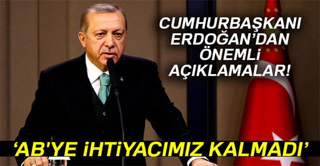 Cumhurbaşkanı Recep Tayyip Erdoğan, “Aslına bakarsanız bizim Avrupa Birliği üyeliğine ihtiyacımız da kalmamıştır. Şayet bugün Avrupa Birliği bir atılım yapacaksa bunun tek bir yolu vardır, o da Türkiye’yi üye yaparak, gerçek anlamda bir ekonomik ve kültürel genişleme hamlesini başlatmasıdır. Eğer Avrupa Birliği bunu yaparsa biz buradayız, Avrupa’nın geleceğine katkı vermekten memnuniyet duyarız. Yapmazsa da bizim için hiç fark etmez, kendi yolumuzda ilerlemeyi sürdürürüz. Türkiye Büyük Millet Meclisindeki tüm partilerimizin de iştirak ettiğini düşündüğüm bu politikamızı, Avrupa Birliğinden kesin bir cevap alana kadar muhafaza edeceğiz” dedi. Onların yeri Kandil biliyorsunuz