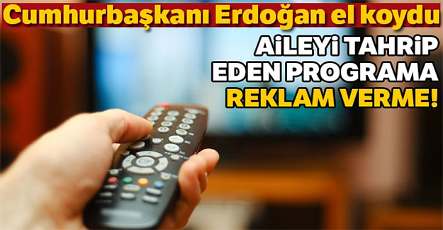 Cumhurbaşkanı Erdoğan, toplumun ruh sağlığını bozan programlara reklam verilmemesi için TBMM’de bir çalışma yapılması talimatını verdi.