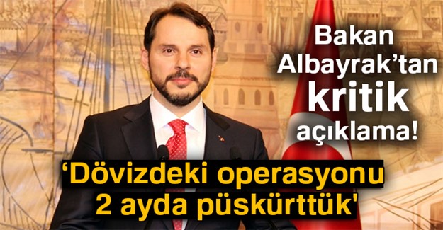 Hazine ve Maliye Bakanı Berat Albayrak, "Dövizdeki operasyonu 2 ayda püskürttük" ifadelerini kullandı.