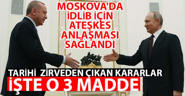 Taraflar, terörizmin tüm tezahürleriyle mücadele ile Birleşmiş Milletler Güvenlik Konseyi tarafından terörist olarak tanımlanan tüm grupların ortadan kaldırılması yönündeki kararlılıklarını yinelerken, sivillerin ve sivil altyapının hedef alınmasının hiçbir şekilde mazur görülemeyeceğini kabul etti.Taraflar, Suriye ihtilafının askeri çözümünün olamayacağının ve ihtilafın yalnızca Suriyelilerin öncülüğünde ve sahipliğinde, Birleşmiş Milletler'in kolaylaştırıcılığında, Birleşmiş Milletler Güvenlik Konseyi'nin 2254 sayılı kararıyla uyumlu siyasi süreç yoluyla sona erdirilebileceğinin altını çizdi.İnsani krizin daha da kötüleşmesinin önlenmesinin, sivillerin korunmasının, ihtiyaç sahibi tüm Suriyelilere önkoşulsuz ve ayrım gözetmeksizin koruma ve insani yardım sağlanmasının, keza ülke içinden yerinden edilmelerin önlenmesi ile mültecilerin ve ülke içinde yerinden edilen kişilerin güvenli ve gönüllü olarak Suriye'deki asıl ikamet yerlerine geri dönüşlerinin kolaylaştırılmasının önemini vurgulanırken, taraflar şu hususlarda mutabık kaldı:“1-İdlip gerginliği azaltma bölgesindeki temas hattı boyunca tüm askeri faaliyetler 6 Mart 2020 tarihinde saat 00:01'den itibaren durdurulacaktır.2-M4 karayolunun kuzeyinde 6 km ve güneyinde 6 km derinliğinde bir güvenli koridor tesis edilecektir. Güvenli koridorun işleyişine dair ayrıntılı esas ve usuller, Türkiye Cumhuriyeti ve Rusya Federasyonu Savunma Bakanlıkları arasında 7 gün içinde kararlaştırılacaktır.3-Türk-Rus ortak devriyeleri, 15 Mart 2020 tarihinde M4 karayolunun Trumba'dan (Serakib'in 2 km batısı) Ain-Al-Havr'a kadar olan kesimi boyunca başlatılacaktır.”