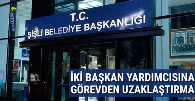 Şişli Belediyesi'de, başkan yardımcıları Asım Kantoğlu ve Nimet Toprak, İçişleri Bakanlığı Mülkiye Başmüfettişlerince görevden uzaklaştırıldı.