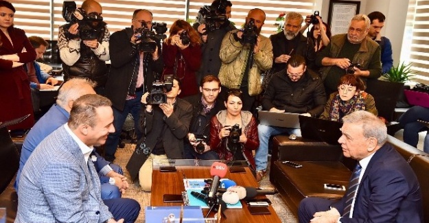 Başkan Şengül ise AK Parti’li belediyelerin Büyükşehir’den beklentilerinin yer aldığı dosyayı Kocaoğlu’na iletti. Ziyarette Şengül, 2019 seçimleri için “Kocaoğlu’nu memnuniyetle yeniden aday görmek isteriz" derken fotoğraf çekimi sırasında Kocaoğlu da, "Yeniden aday olacağım için beni yakışıklı çekin" diye espri yaptı.İzmir Büyükşehir Belediye Başkanı Aziz Kocaoğlu, AK Parti İzmir İl Başkanı Aydın Şengül’ü makamında ziyaret etti. Başkan Kocaoğlu, Cumhuriyet Halk Partisi, Milliyetçi Hareket Partisi ve İyi Parti’yi ziyaret ederek kentte bekleyen projelerin yer aldığı dosyayı il başkanlarına sunmuş ve destek istemişti. CHP İzmir İl Başkanı Deniz Yücel, MHP İzmir İl Başkanı Necat Karataş ve İYİ Parti İzmir İl Başkanı Yıldırım Ulupınar, Başkan Kocaoğlu’na yatırımların Ankara’daki takibi için destek sözü vermişti. Kocaoğlu siyasi partiler turunun sonunda AK Parti İl Başkanı Şengül’ü ziyaret ederek dosya sunarken, Başkan Şengül de AK Parti’li belediyelerin Büyükşehir’den beklentilerinin yer aldığı dosyayı Kocaoğlu’na iletti. Buluşmada, İzmir Büyükşehir Belediye Meclisi AK Parti Grup Başkanvekili Bilal Doğan da bulundu.“Parayla pulla ilgisi yok”Ziyarette konuşan Başkan Kocaoğlu, “İkinci il başkanlığınızı kutlarım. Hem ailenize hem AK Parti’ye hem İzmir’e hayırlı olsun. Başarıyla hizmet edeceğimizi biliyorum. Zaten birbirimizi tanıyoruz. Her seçim arifesinde biliyorsunuz tüm ilçelerimizi dolaşıyoruz. Bugün bizim emanetçi olduğumuz yönettiğimiz İzmir Büyükşehir Belediyesine ait bütün mekanların tüm partilerimizin emrinde olduğunu her zaman kullanabileceğinizi ifade etmeyi istiyorum. Bir de bir dosya var. Bekleyen hizmetler var. Sizin olmadığınız gün diğer siyasi partilerimizin İzmir il başkanlıklarını ziyaret ettim. Önemli bir şey değil. Takip edilmesi gereken işler var. Hepimizin bildiği onay bekleyen işler var. Parayla pulla ilgisi yok” dedi.“Emekliliği düşünmediğinize göre daha gençsiniz”Şengül de, “Öncelikle nazik ziyaretiniz için teşekkür ediyoruz. Daha önce beraber çalıştık. Birbirimizi yakinen tanıyoruz. Uzun yıllar siyasetin içinde olduğumuz için İzmir’in sorunlarını biliyoruz. İnşallah İzmir adına ara sıra çatışma da olsa beraber hizmet edeceğiz” diye konuştu. Kocaoğlu bunun üzerine, “Siyasetin doğasında var. Biz her ay Bilal Doğan’la tartışıyoruz” dedi. Şengül konuşmasına şöyle devam etti:“Ama İzmir’in menfaati olduğu zaman beraber çalışacağız. Makamların geçici olduğunu biliyoruz. Çatışmadan uzak, samimi bir şekilde İzmir adına ne yapacaksak beraber yapacağız. Belki 2007’deki Aydın Şengül biraz yaşlandı daha tecrübe kazandı.”Kocaoğlu bunun üzerine, “Yaşlandı demeyelim. Tecrübe kazandı diyelim. İzmir’de benden başka yaşlı siyasetçi yok” dedi. Şengül ise, “Maşallahınız var. Emekliliği düşünmediğinize göre daha gençsiniz” diye karşılık verdi. Bunun üzerine Kocaoğlu, “Ben düşünüyorum. Hanım izin vermiyor” dedi.