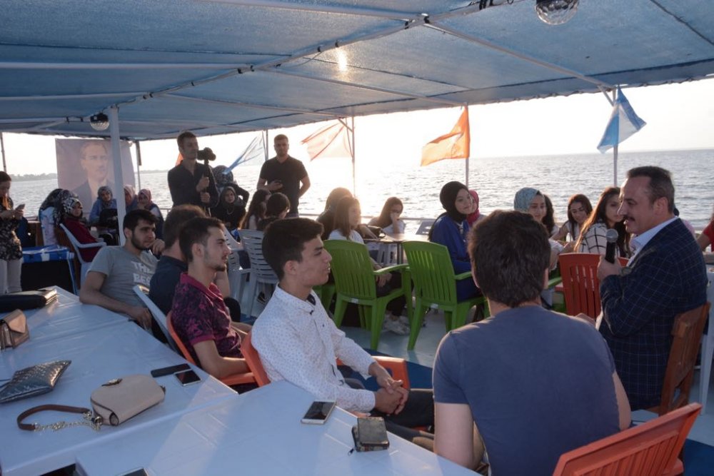 İnciraltı’ndan kalkan tekne ile Konak Pier’e kadar gelen Başkan Şengül daha sonra Bornova’da Ak Parti İzmir İl Başkanlığı tarafından düzenlenen iftara katılmak üzere ayrıldı. Gençler ise tekne ile körfez turunu ve seçim sohbetlerini geç saatlere kadar sürdürdü.