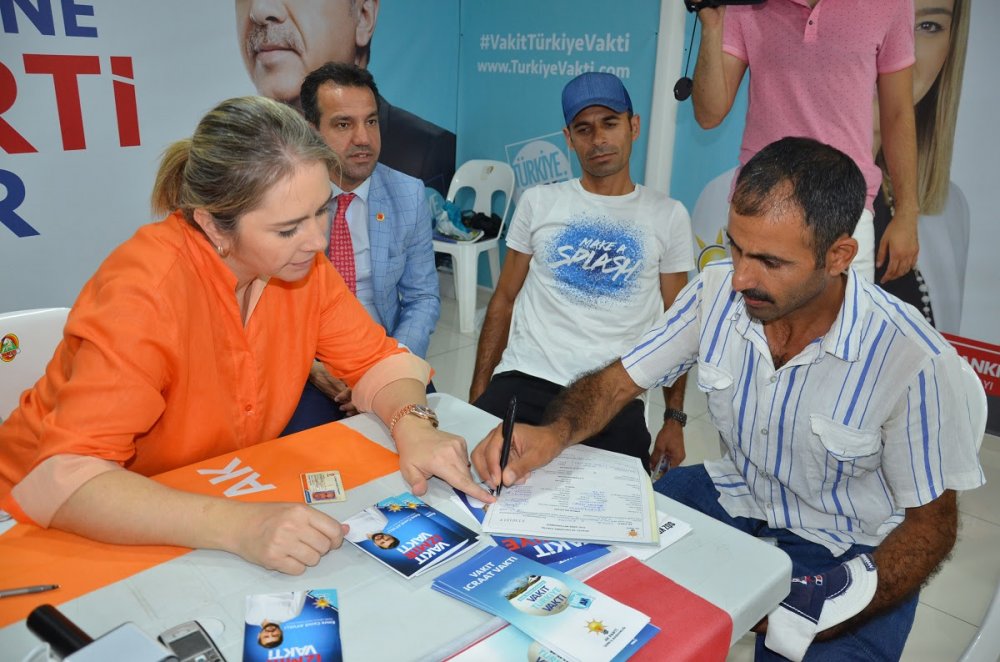 MİLLETVEKİLİNDEN AK PARTİYE ÜYE KAYDIÇankaya seçim kordinasyon merkezinde teşkilatı ziyaret eden Milletvekili Ceyda Bölünmez Çankırı, AK Parti'ye yeni üyeler de kazandırdı. Üye formunu elleriyle dolduran Çankırı, tavsiye eden kısmına kendi adını yazdı. Koordinasyon merkezine bilgi almaya gelen vatandaşlara AK Parti icraatlarını anlatan Çankırı, üyelik formu dolduranlara "Çevrenize Hükümetimizin icraatlarını anlatın. İzmir' de çok eksik var. Elbirliği ile şehrimize hizmet edelim" dedi.