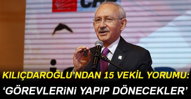 Muğla'nın Marmaris ilçesinde düzenlenen "Anadolu Medya Buluşması" programına katılan CHP lideri Kemal Kılıçdaroğlu, program sonunda gazetecilerin sorularını cevapladı. Türkiye’nin 81 vilayetinden 400’ün üzerinde gazetecinin katıldığı programda önceden belirlenen 8 gazetecinin soru sormasına müsaade edildi. Önce tüm gazetecilerin sorularını alıp daha sonra cevaplara geçen Kılıçdaroğlu, İYİ Parti'ye gönderilen 15 vekille ilgili olarak, “15 milletvekili elbette geri dönecekler. Belli bir görev için oraya gittiler. Biz demokrasiye karşı kurulan bir kumpası, oyunu bozmak için o arkadaşlarımızı görevlendirdik. Cumhurbaşkanı adayı daha önümüzde süre var, bu konuda çalışıyoruz. Güzel bir aday çıkaracağız. Bundan en ufak şüphemiz yok” dedi.
