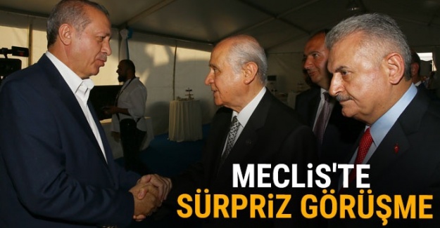 Cumhurbaşkanı Erdoğan, 27. Dönem 2. Yasama Yılı açılış konuşmasının ardından MHP Genel Başkanı Devlet Bahçeli ile TBMM'de görüştü. Cumhurbaşkanı Erdoğan, TBMM Başkanı Binali Yıldırım ve MHP Genel Başkanı Devlet Bahçeli TBMM'de bir araya geldi.ERDOĞAN'DAN AÇIKLAMA