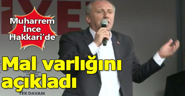 İnce'nin yayınladığı beyana göre çiftin 4 ayrı banka hesabında toplam 100 bin Türk lirası, 20 bin ABD Doları ve 30 bin Euro bulunuyor. İnce çifti aynı zamanda 40 bin lira değerinde 225 gram altına sahip. Muharrem İnce’nin iki ayrı bankaya da 31 bin 200 lira kredi borcu bulunuyorCumhurbaşkanı adayı Muharrem İnce, mal varlığını açıkladı.Hakkari mitinginde mal varlığını açıklayacağını söyleyen ve '5 yıl sonra zenginleşip, zengişlemediğimi göreceğiz' diyen Muharrem İnce'nin mal varlığında, 5 otomobil, 2 ev, 2 tarla ve 2 arsa bulunuyor.Muharrem İnce'nin yayınladığı beyana göre çiftin 4 ayrı banka hesabında toplam 100 bin Türk lirası, 20 bin ABD Doları ve 30 bin Euro bulunuyor. İnce çifti aynı zamanda 40 bin lira değerinde 225 gram altına sahip. Muharrem İnce’nin iki ayrı bankaya da 31 bin 200 lira kredi borcu bulunuyor.