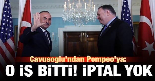 Dışişleri Bakanı Mevlüt Çavuşoğlu, ABD Dışişleri Bakanı Mike Pompeo ile yaptığı görüşmede mevkidaşına S-400 anlaşmasına ilişkin, 'Mevcut anlaşma tamamlandı, bunu iptal edemeyiz' dedi.