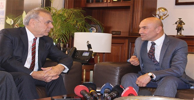 İzmir Büyükşehir Belediye Başkanı Aziz Kocaoğlu'nu eşi Neptün Soyer ile birlikte ziyaret eden CHP İzmir Büyükşehir Belediye Başkan adayı Tunç Soyer Kocaoğlu'na "Sizsiz bu iş olmaz” derken, Kocaoğlu da, "Hep birlikte çalışıp başaracağız” dedi.CHP İzmir Büyükşehir Belediye Başkan adayı Tunç Soyer, İzmir Büyükşehir Belediye Başkanı Aziz Kocaoğlu'nu, eşi Neptün Soyer ile birlikte ziyaret etti. Kocaoğlu tarafından başkanlık girişinde karşılanan Soyer çifti, Kocaoğlu'nun eşi Türkegül Kocaoğlu'na iletilmek üzere çiçek takdim etti. Ziyarette İzmir Büyükşehir Belediye Başkan Vekili Sırrı Aydoğan ve İzmir Büyükşehir Belediyesi Genel Sekreteri Buğra Gökçe de hazır bulundu.Ziyarette konuşan Kocaoğlu, “Hayırlı uğurlu olsun. Hep birlikte çalışıp başaracağız. İzmir'de hedefimiz partimizin iktidarını sürdürmek. Umarım 2014'teki gibi olmaz. 2009'daki gibi bir başarıyı harç vurup, birlik ve beraberlik içerisinde örgütü harekete geçirip hedefe kilitleyip süreyi iyi değerlendirip çalışmamız gerekiyor. Örgütün ve İzmirlilerin sağduyu ile hareket edeceğini ve büyük bir başarı ile 31 Mart akşamı yerel seçimleri tamamlayacağımızı düşünüyorum. Şimdi çalışmalarımızı sahada sürdüreceğiz. Bizim ne bir yere gitmemiz söz konusu değil. Bir yerden aday olmamız da söz konusu değil. Biz partimizde yıllardan beri nasıl çalışıyorsak öyle çalışmaya devam edeceğiz. Her desteği vereceğiz. İzmir'in geleceği için yaşam biçimi ve CHP'nin başarısı için her türlü desteği vermeye hazırız. Bundan gayrısı düşünülemez” diye konuştu.