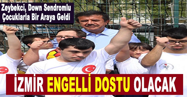 “İzmir, engelli dostu olacak” AK Parti İzmir Büyükşehir Belediye Başkan Adayı Nihat Zeybekci, 21 Mart Dünya Down Sendromlular günü kapsamında, Bayraklı Mansuroğlu mahallesindeki halı sahada, Türkiye Özel Sporcular Spor Federasyonu bünyesindeki down sendromlu çocuklarla bir araya geldi. Down sendromluların birer cennet hediyesi olduğunu belirten Nihat Zeybekci, “Onların aileleriyle birlikte mutlu olacağı İzmir’i ortaya çıkarmak boynumuzun borcudur” dedi.