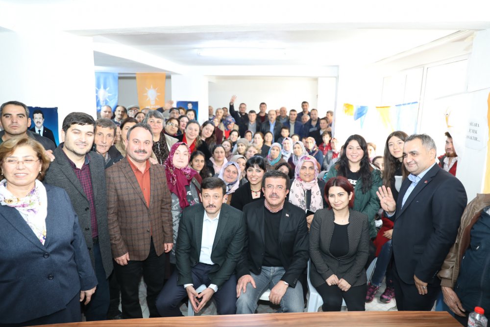 - "Kadın nezaketiyle memlekete sahip çıkmak"Zeybekci, programa gelen kalabalıkta kadın yoğunluğunu görünce, “Hanımefendileri tebrik ediyorum. İşte böyle olacaksın, bir anne hassasiyeti ile bir hanımefendi, bir kadın nezaketiyle memlekete sahip çıkmak budur. Siz eğer inandıysanız ‘ben buna sahip olacağım ve takip edeceğim’ dediyseniz o iş olur zaten” dedi.Zeybekci’nin ziyaretlerine AK Parti Genel Başkan Yardımcısı Hamza Dağ da eşlik etti.Zeybekci, her iki ilçede AK Parti ve MHP ilçe teşkilatları ile Kiraz Belediyesi’ni ziyaret etti. Kiraz Belediye Başkanı Saliha Özçınar, Zeybekci ve Dağ’a belediyenin açtığı kurslarda kursiyerlerin ürettiği efe maketi ile tablo hediye etti. Zeybekci belediyedeki ziyarete katılan muhtarlarla sohbet etti.AK Parti Bayraklı İlçe teşkilatının düzenlediği kaynaşma gecesine de katılan Zeybekci, “İzmir bize gençlerin emaneti. Onun için sizden en yakınlarından başlayarak çevrelerindeki herkesi ziyaret etmenizi, kendilerine, çocuklarına, İzmir’in geleceğine oy vermelerini isteyin“ dedi.