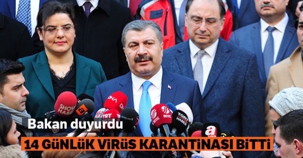 Çin'in Vuhan kentinde ortaya çıkan yeni nesil korona virüs salgını sonrasında Türkiye'ye getirilen 42 kişi ve uçakta bulunan mürettebatın 14 günlük karantina süresinin sona ermesinin ardından Sağlık Bakanı Fahrettin Koca, Zekai Tahir Burak Eğitim Kadın Sağlığı Eğitim ve Araştırma Hastanesinde bulunan 61 kişiyi ziyaret etti. Ziyaret sonrasında açıklamalarda bulunan Bakan Koca, "Çin'in Vuhan kentinden tahliye ettiğimiz 42 yolcumuzun karantinadaki 14'üncü günüydü. Bu süreçte Bilim Kurulunun önerileri doğrultusunda 14 günlük bir zaman diliminde (Çin'den gelen kişilerin) karantina altına alınması, gözlemin ve devam eden süreçle ilgili takiplerin nasıl yapılması gerektiği ile ilgili bir öneri olmuştu. 3 günde bir numunelerin tekrarı alınmıştı. 14 günlük zaman diliminde yolcularımız geldiklerinde de herhangi bir hastalık bulgusu yoktu. İlk günden itibaren 3 gün arayla yaptığımız bütün tetkikler ve son olarak dün gece aldığımız numunelerin sonuçları da bu sabah çıktı. Son tetkikte yerli üretilen kitle çalışıldı. Hızlı sonuç verdiği için bugün çıkan sonuçların negatif olduğunu yani herhangi bir korona virüsün olmadığını söyleyebiliriz" diye konuştu.Çin'den getirilen 42 yolcuyla ayrı ayrı görüştüğünü ifade eden Bakan Koca, "Bu süreçte özellikle sabrettiler, hem kendi sağlıkları hem de vatandaşların sağlığı açısından 14 günlük karantina sürecini geçirmiş oldular" şeklinde konuştu.