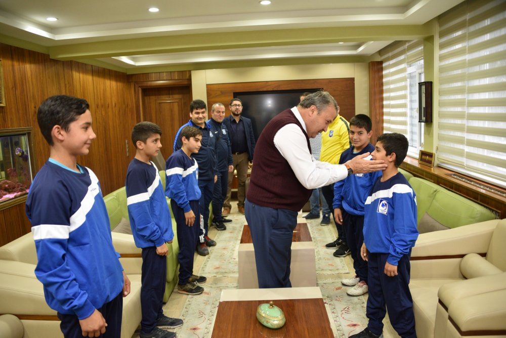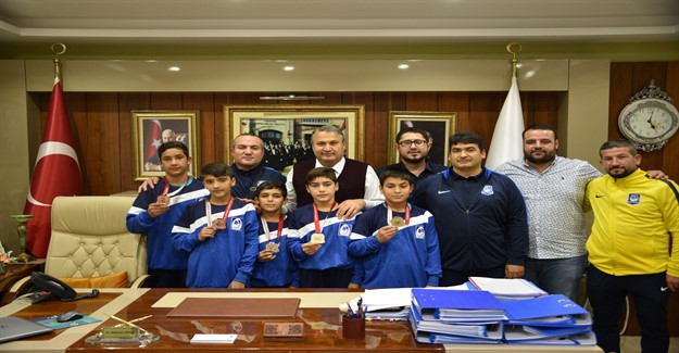 Yunusemre Belediyespor güreş takımı sporcuları Ankara’da düzenlenen 11 – 13 Yaş Türkiye Grekoromen Güreş Şampiyonası’nda elde ettiği derecelerle sevindirerek; 600 sporcunun katıldığı turnuvada madalyalar aldı. Turnuvada takım sporcularından Hamed Navabi, Yasin Çakır Türkiye birincisi, Emir Yılmaz Türkiye ikincisi, Semih Yılmaz ve Sarajuddin Navabi ise Türkiye üçüncüsü oldu. Başarılı sporcular madalya sevincini Yunusemre Belediye Başkanı Dr. Mehmet Çerçi ile paylaştı. Ümit vaat eden güreşçileri makamında ağırlayan Başkan Çerçi, sporcuları kutlayarak, yakaladıkları başarının kendilerini gururlandırdığını söyledi. Ziyarette Yunusemre Belediyespor Başkanı Arif Alkan, Güreş Antrenörleri Ömer Rona ve Murat Bozkurt’ta hazır bulundu.