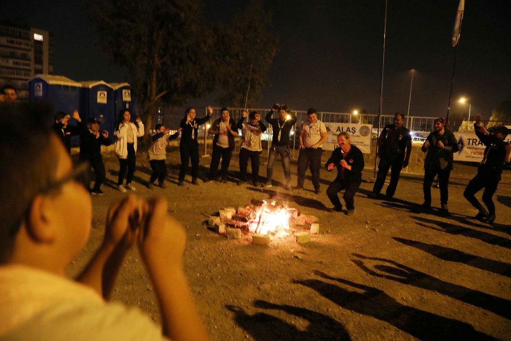 AVRUPA İLE İLETİŞİME GEÇTİLERKelime anlamı cümbüş, eğlence, kutlama, izci toplantısı anlamına gelen jamboree etkinliği için bir araya gelen izciler ilk olarak gece konaklayacakları çadırları dayanışma içinde tek tek kurdu. İzciler törenle Türk Bayrağı’nı göndere çekerek kamp açılışını gerçekleştirdi. Daha sonra TRAC Bayraklı Şubesi’nin bahçeye kurduğu seyyar telsiz istasyonu ile Avrupa’da Avusturya, Sırbistan, Arnavutluk, İtalya ve Almanya, Belçika ve uzak doğudan Japonya’da kamp kuran jota kampçıları ile telsiz sayesinde haberleşildi. Her yıl dünyanın her köşesinden izcilerin amatör radyoları sayesinde buluştuğu bir etkinlik olan Jota, 1958 yılında ilk “jamboree on the air” yapıldığından beri, milyonlarca izci bu yolla tanışmış, Jota sırasında kurulan bağlantıların çoğu, izci grupları arasında yıllarca sürdürülen mektup arkadaşlıklarına dönüştü. Bu kapsamda Bayraklı’da bir araya gelen izciler havanın kararmasıyla birlikte hep beraber kamp ateşi de yaktı. Ateş etrafında bir araya gelen izciler şarkılar söyledi, taklit yeteneklerini sergiledi. Geleneksel hale gelen ateş etrafında buluşmaya TRAC üyeleri de eşlik etti. İzciler geceyi kurdukları çadırda geçirerek etkinliği tamamladı.