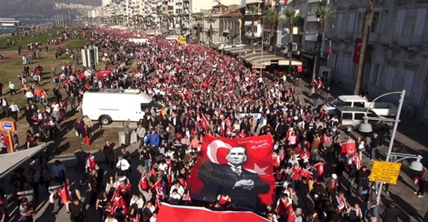 İzmir Büyükşehir Belediyesi, 10 Kasım Atatürk'ü anma programı kapsamında bu yıl yine unutulmayacak bir etkinlik programına imza atacak. Türkiye Cumhuriyeti'nin kurucusu Mustafa Kemal Atatürk'ün 80. ölüm yıldönümü nedeniyle düzenlenecek geleneksel "Ata'ya Saygı Yürüyüşü" 10 Kasım Cumartesi günü saat 14.00'de Alsancak Limanı önünden başlayacak. Bu yıl 11. kez düzenlenecek yürüyüşe katılacak İzmirliler, 350 metre uzunluğundaki dev Atatürk posterini taşıyarak Cumhuriyet Meydanı'na kadar ilerleyecek. Bu anlamlı yürüyüşe, İzmir Büyükşehir Belediye Başkanı Aziz Kocaoğlu da eşlik edecek. "Ata'ya Saygı Yürüyüşü"nün son bulacağı Cumhuriyet Meydanı'nda, İzmir Büyükşehir Belediyesi Kent Orkestrası "Atatürk'ün sevdiği şarkılar"dan oluşan bir dinleti sunacak.BÜYÜK KONSER AASSM'DEİzmir Büyükşehir Belediyesi, İzmir Devlet Senfoni Orkestrası ve Dokuz Eylül Üniversitesi Devlet Konservatuarı Gençlik Korosu işbirliğiyle hazırlanan Atatürk’ü Anma Konseri, 10 Kasım Cumartesi saat 20.30’da Ahmed Adnan Saygun Sanat Merkezi (AASSM) Büyük Salon’da gerçekleşecek. Bestecisi ve orkestra şefi Tolga Taviş'in yönetimindeki, tarih danışmanlığını Dr. Öğretim. Üyesi Türkan Başyiğit’in üstlendiği "Sensin Atatürk" adlı eser, sadece Atatürk’ün aziz hatırasını anmayı değil, insani erdemlerini yaşanmış anılar aracılığıyla anlatarak bir farkındalık yaratmayı da hedefliyor. İzmir Büyükşehir Belediyesi’nin sponsorluğu ile desteklenen eserde “Bir Adam” rolünü Altuğ Dilmaç üstleniyor. Konser "ücretsiz" olarak izlenebilecek.